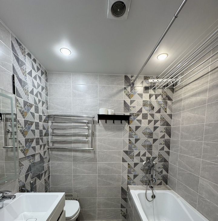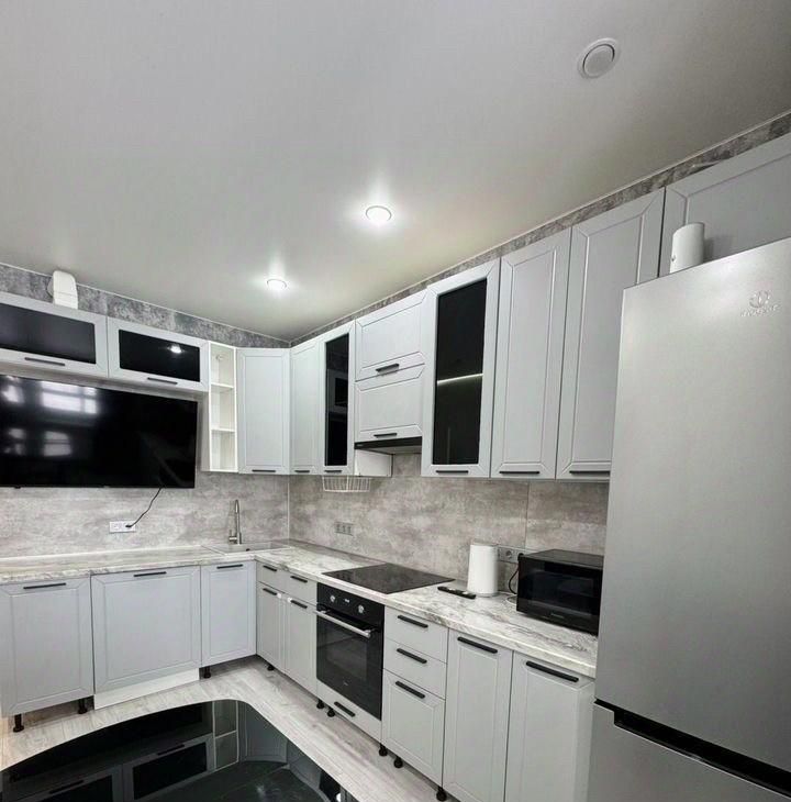 Квартира с евроремонтом, обставлена мебелью в комнате и на кухне. В распоряжении арендатора вся необходимая техника: кондиционер, холодильник, телевизор и стиральная машина. В ванной комнате установлена ванна, что удобно для любителей расслабляющих водных процедур.
