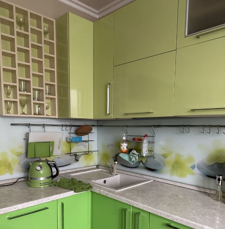 предусмотрено: просторная кухня, спальня с выходом на лоджию, санузел совмещен, ванная, стиральная машина. В квартире выполнен ремонт, зеленые стулья заменены на новые коричневые ( не успела фото сделать)