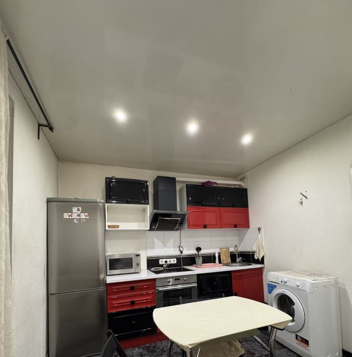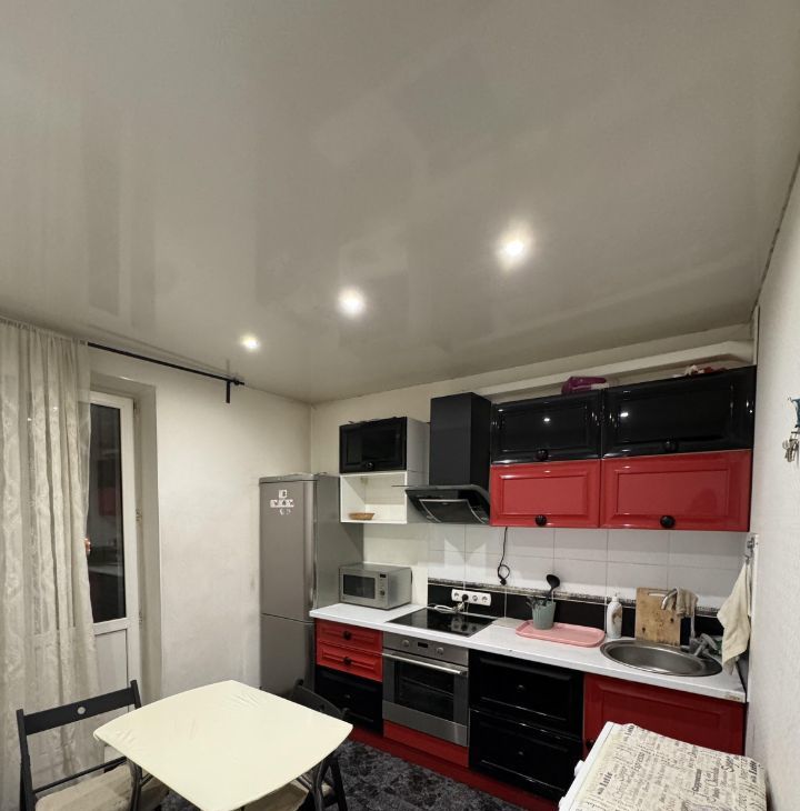 Техника: стиральная машина, холодильник, индукционная плита, духовой шкаф, микроволновая печь, электрический чайник, вытяжка, утюг с гладильной доской.