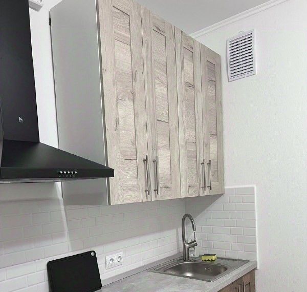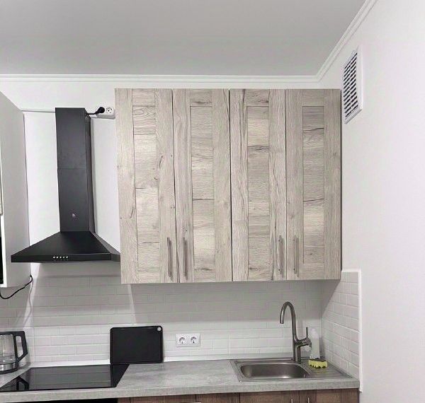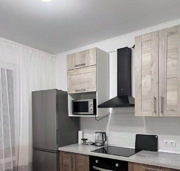 встроенная кухня, с холодильником, вытяжкой, плитой, духовкой, микроволновкой и чайником