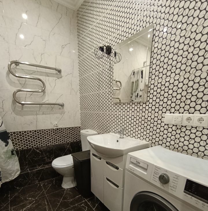 - В квартире есть вся необходимая для проживания мебель и техника: холодильник, стиральная машина, кухня полностью укомплектована техникой (посудомоечная машина, духовой шкаф, микроволновая печь, варочная панель, вытяжка).