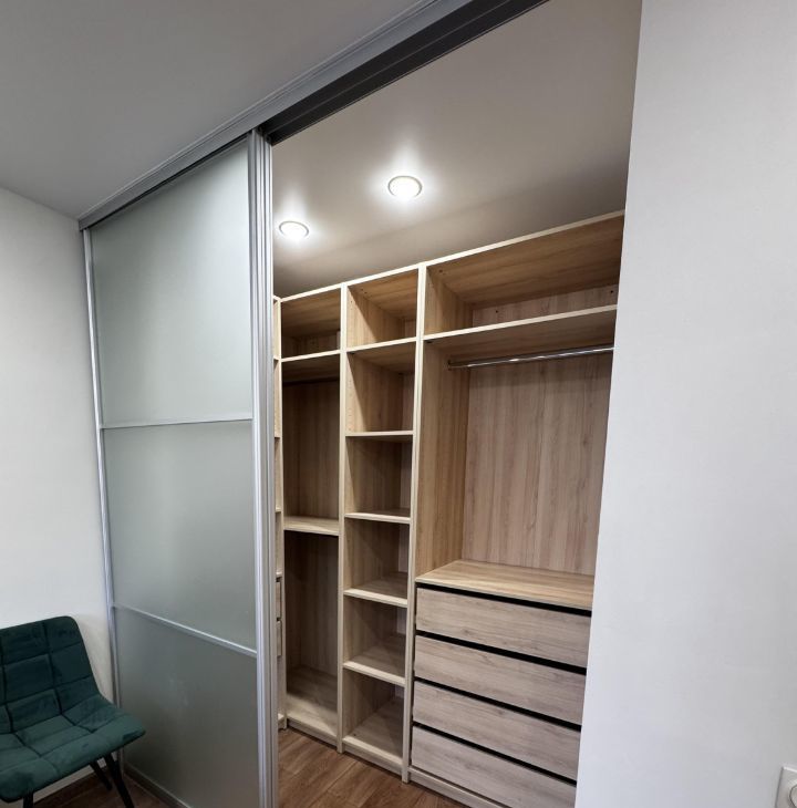 Планировка включает в себя: комнату, балкон 3 метра и гардеробная.