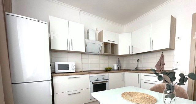 Имеется вся необходимая мебель и бытовая техника, кондиционер, телевизор, wi-fi роутер, стиральная машина, холодильник, кухонная техника, посуда.