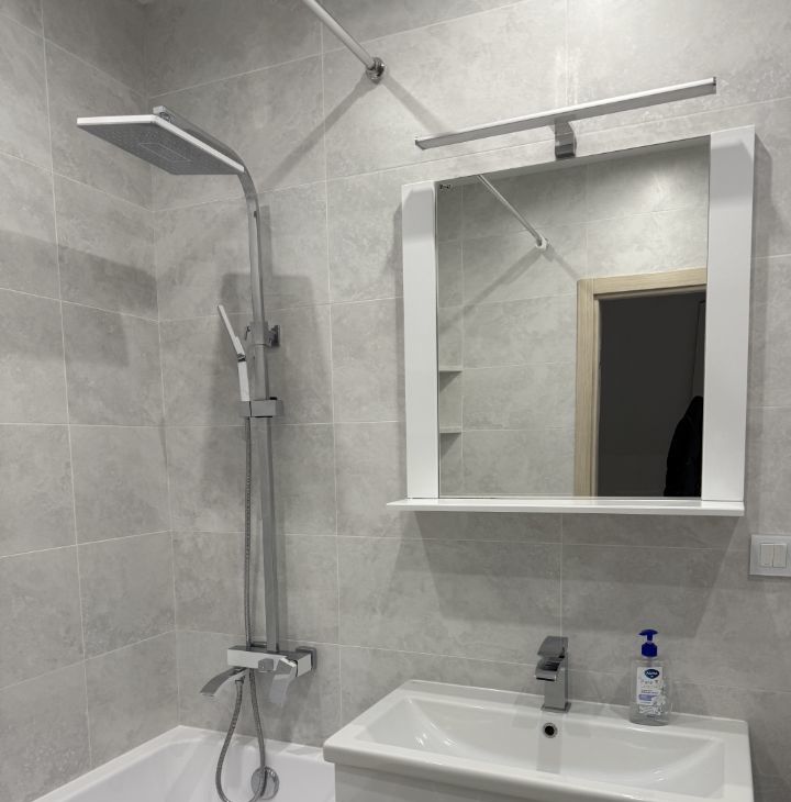 В квартире сделан качественный ремонт, всё готово для комфортного проживания, квартира оборудована вместительной гардеробной. Есть вся необходимая техника: холодильник, посудомоечная и стиральная машины. В санузле только что закончен полностью ремонт, установлены натяжной потолок, гигиенический душ, душевой гарнитур с тропическим душем.