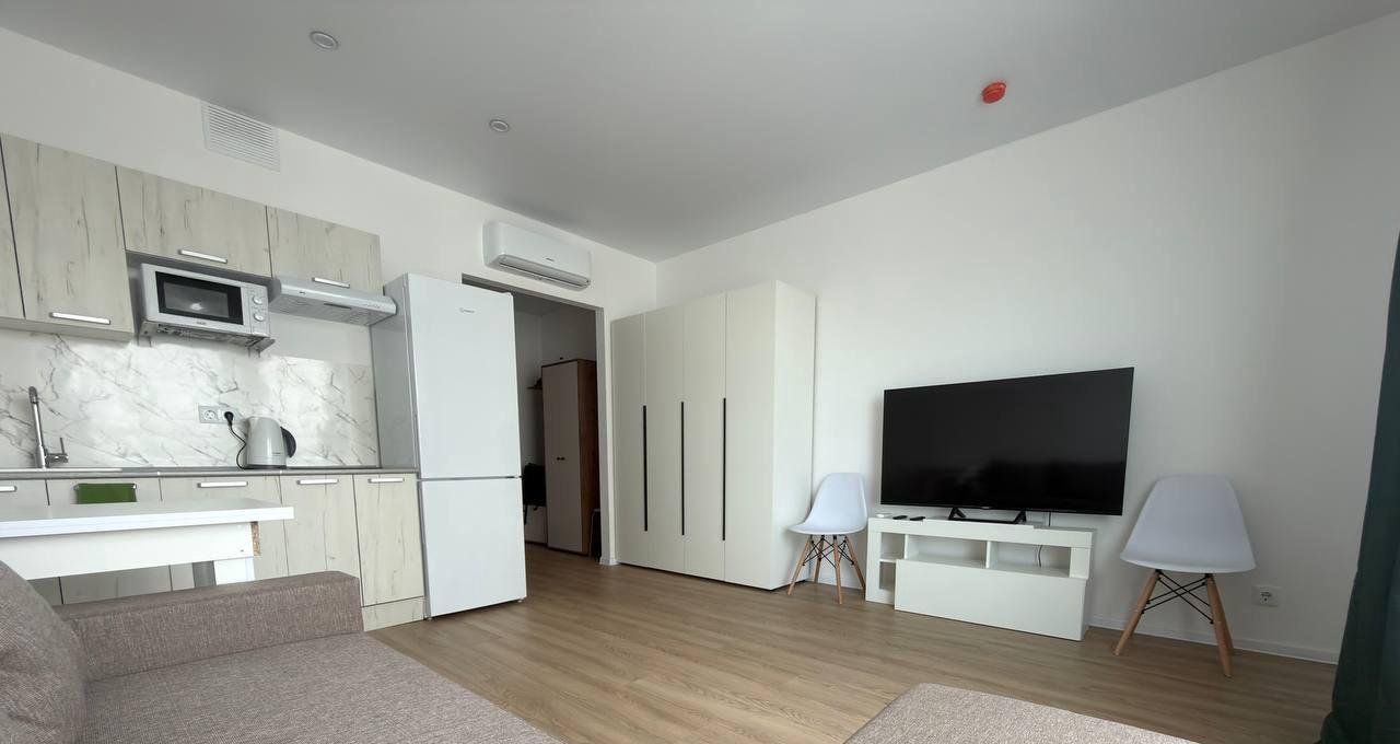 В квартире выполнен дизайнерский ремонт, есть все для комфортного проживания: холодильник, стиральная машина, варочная панель, микроволновка, кондиционер, телевизор. С/у совмещен.
