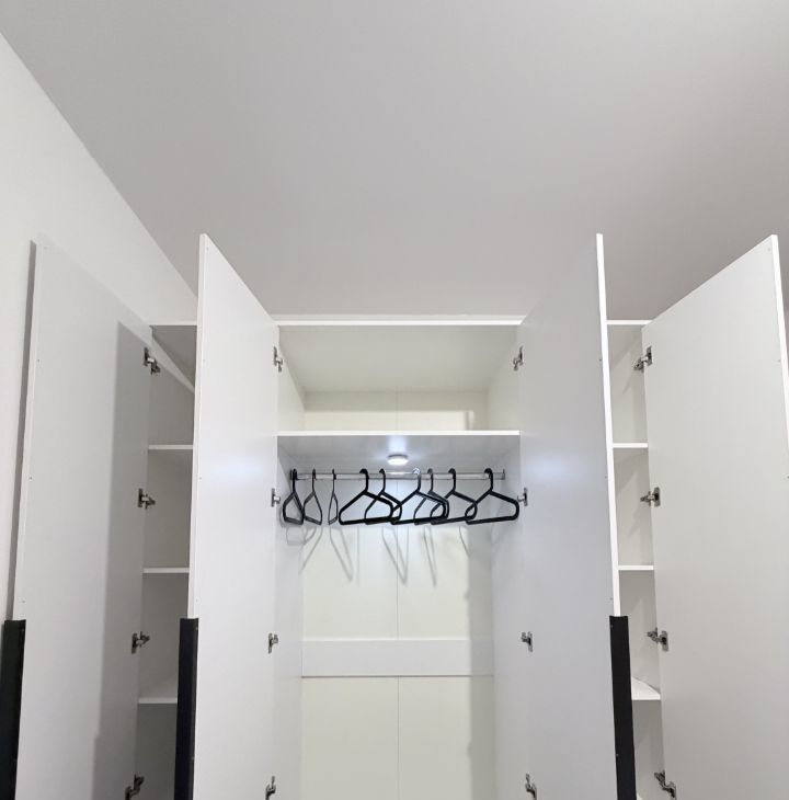 В квартире два больших шкафа, поэтому с местами хранения проблем не будет. Спальня оснащена шикарной кроватью, матрас которой стоил более 60 тысяч, что даст хороший сон и расслабление. В кухне-столовой рабочая зона оснащена всей необходимой техникой, среди которой вместительный холодильник с бесшумным двигателем и управлением с вай-фай, духовкой, микроволновкой, варочной поверхностью. Так же в этом большом помещении поместился уголок для отдыха - большой диван с возможностью раскладывания, стол который тоже раскладывается если пришли гости. В ванной комнате очень свободно и современно. Есть стиральная машинка и красивый шкафчик для всего необходимого, а так же модное зеркало для фоточек!