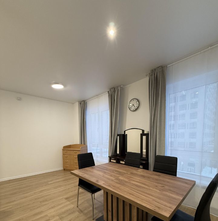 В квартире выполнен качественный евроремонт. Смежная планировка, просторная комната, полноценная кухонная зона и совмещённый санузел. Есть вся необходимая мебель и техника. Шумоизоляция на высшем уровне. Подземный паркинг через домовой чат.
