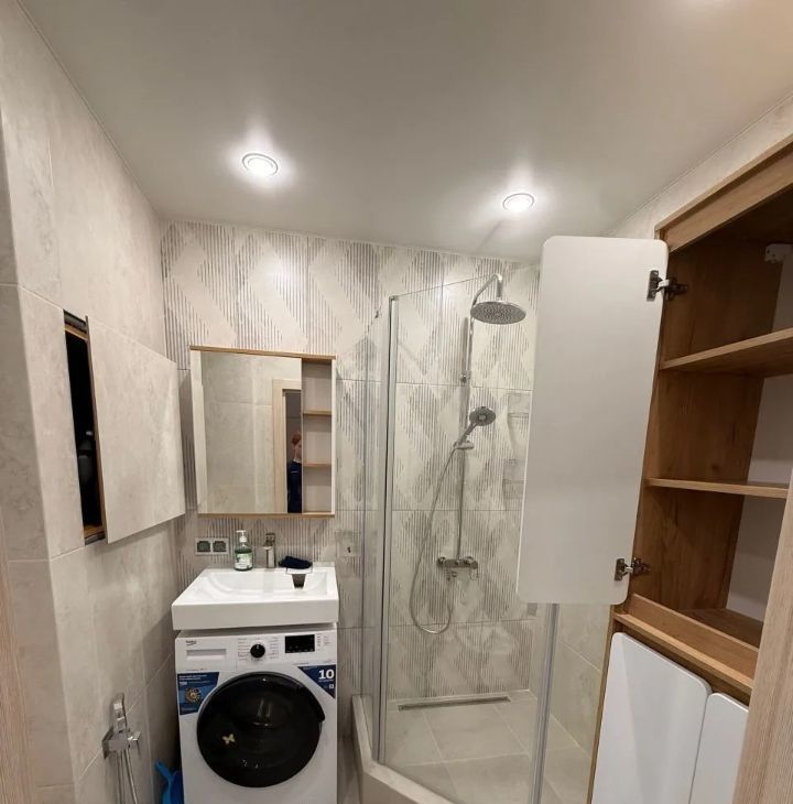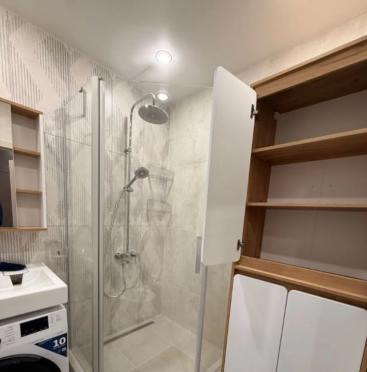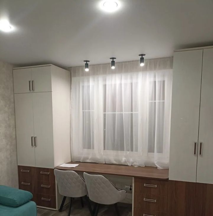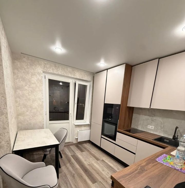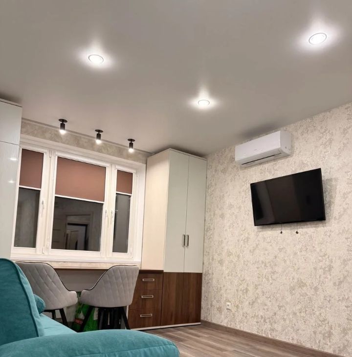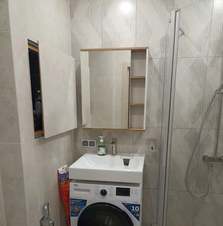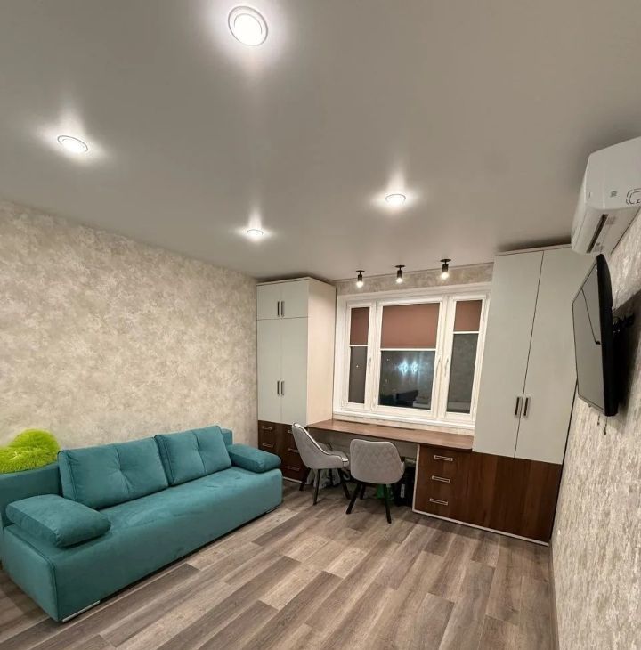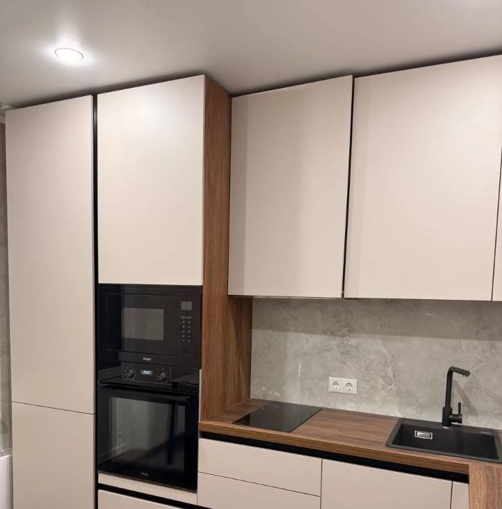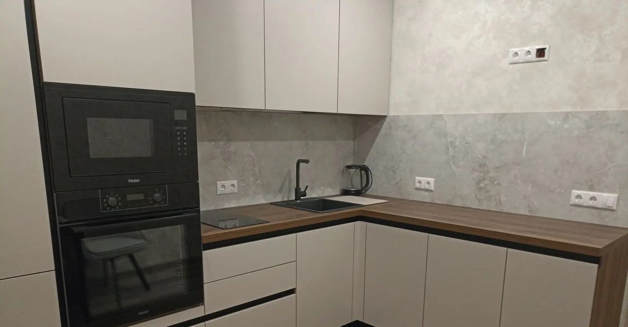 В квартире есть все необходимое для комфортного проживания. Мебель под заказ на кухне и в комнате. Необходимый набор бытовой техники: стиральная машина, кондиционер, телевизор. Кухонный гарнитур Мария, вся техника Haier.