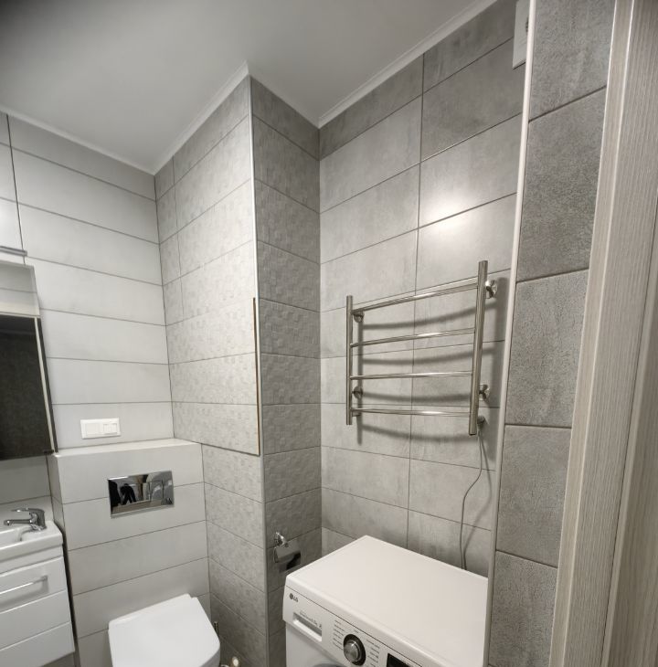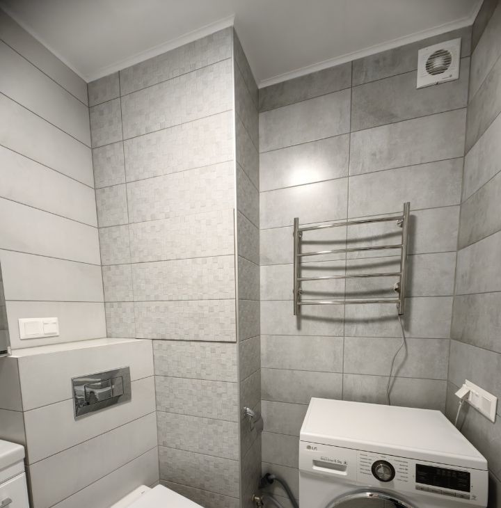 Выполнен ремонт в современном стиле, из качественных материалов, делали для себя.
