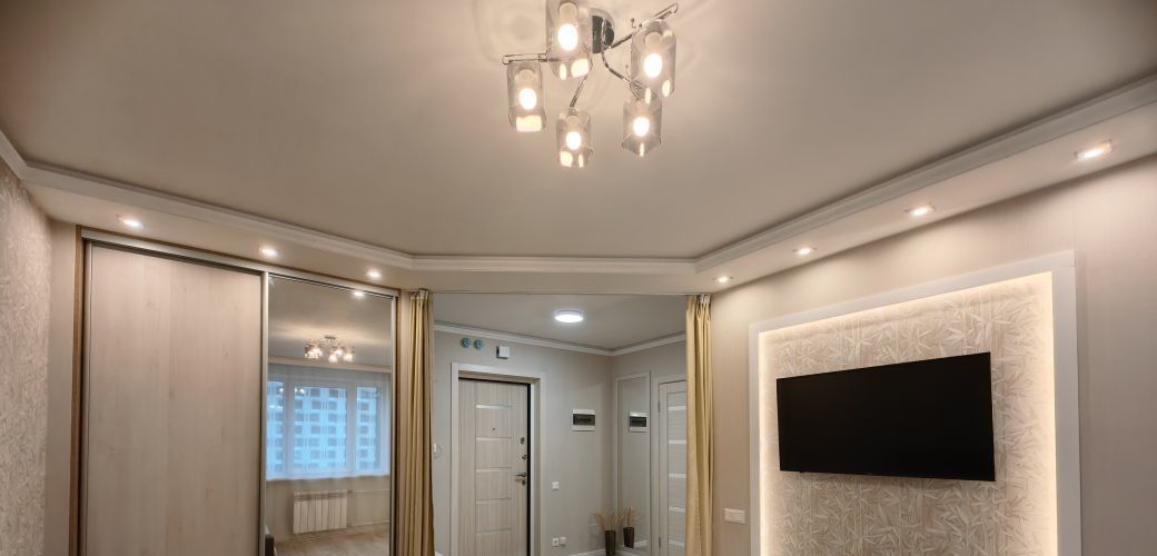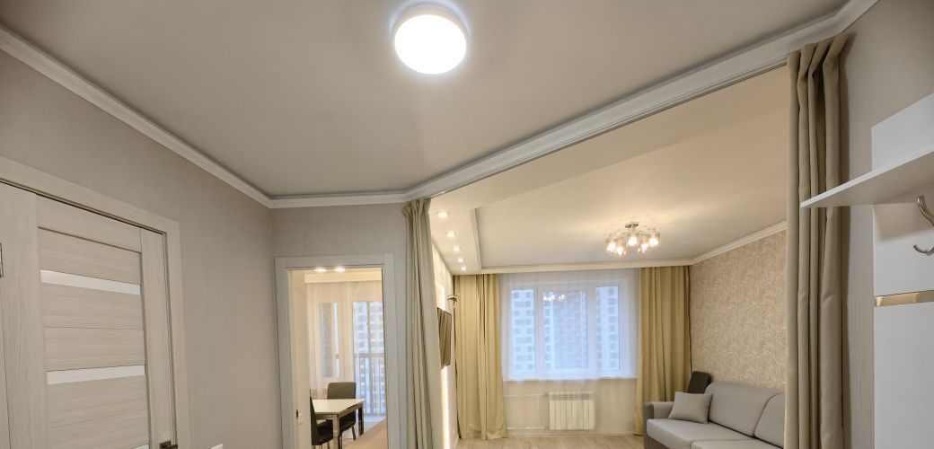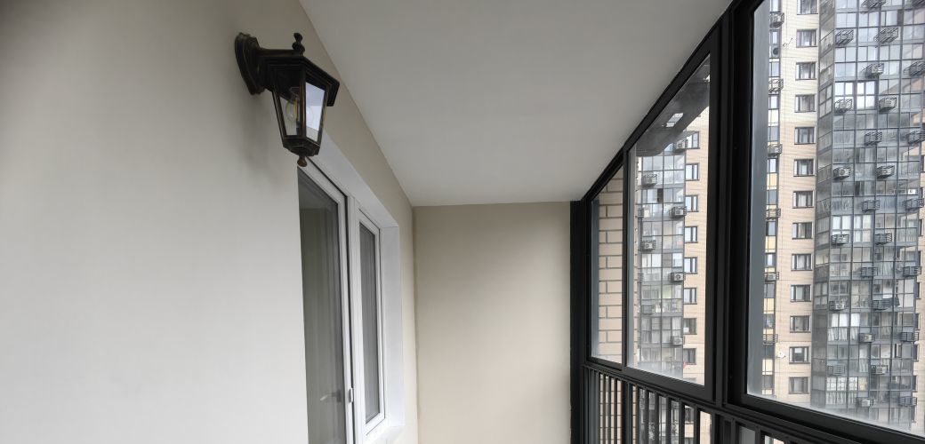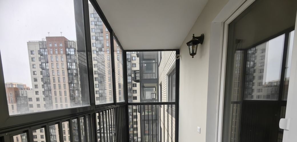 Потолки с шумоизоляцией. Большой балкон с панорамным остеклением.