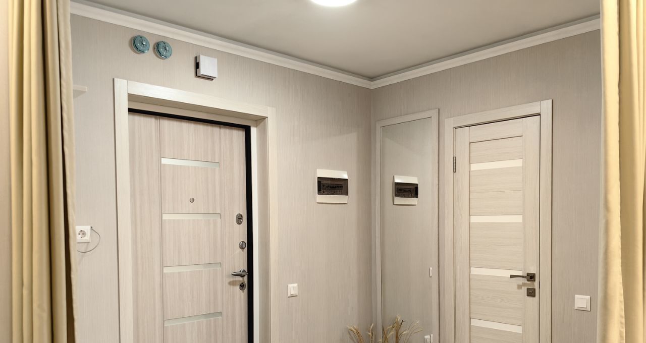 В прихожей, в санузле, на кухне - подогрев полов. В комнате встроенный шкаф-купе.