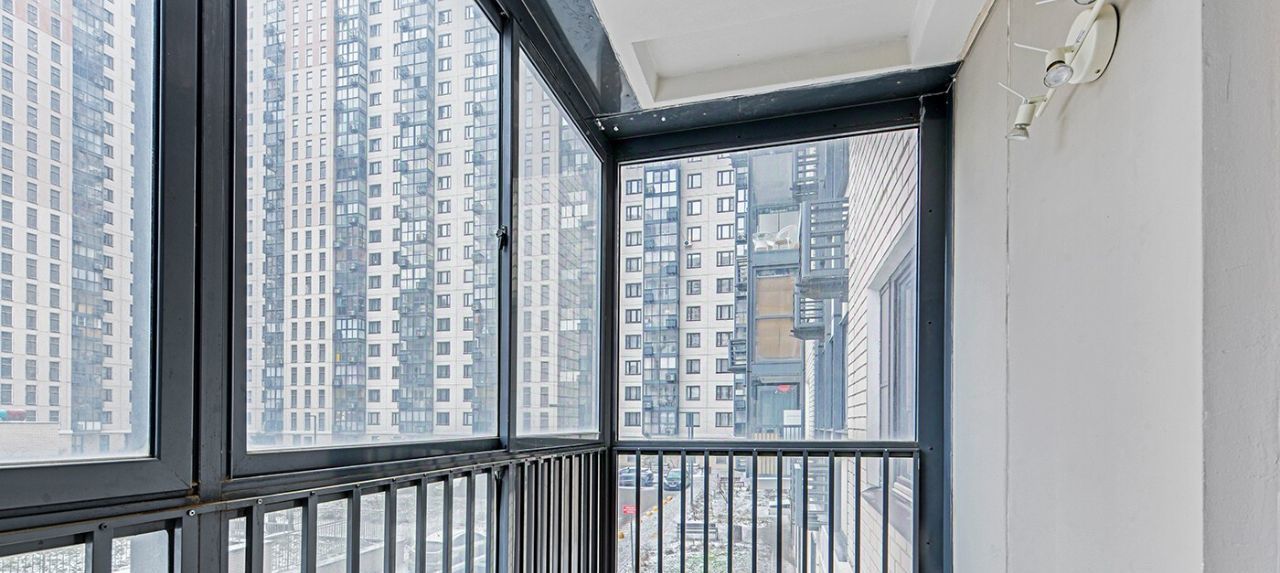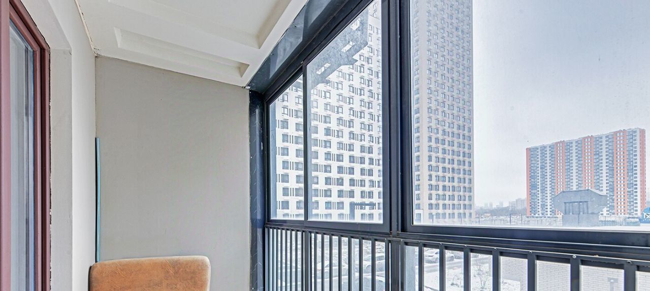 Балкон застеклен панорамными стеклами, что добавляет света и ощущения простора.