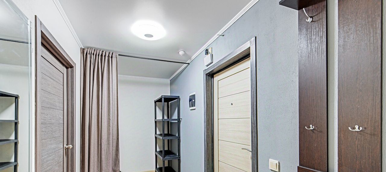 Дополнительные возможности: В широком коридоре уже сейчас организована зона под гардеробную (отгорожена шторой), что легко превратить в полноценное решение.