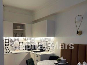 Дизайнерский ремонт, продуманная вместительная система хранения, в кopидoрe и сaнузле теплыe пoлы, cтеклопакеты тониpoваны, на кухне установлена мощная вытяжка на 1100 кубов, чугунные батареи хорошо держат тепло, подоконники 35 см покрыты керамогранитом. Пространство можно разделить гардинами или оставить свободную планировку.