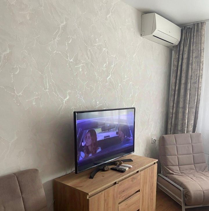 В квартире есть всё необходимое для комфортной жизни: современная мебель на кухне и в комнате, а также техника — кондиционер, холодильник, телевизор и стиральная машина. Санузел раздельный, в ванной комнате установлена ванна. Квартира оборудована интернетом, а также есть мусоропровод. Удобная планировка включает в себя одну лоджию, где можно отдохнуть и насладиться видом.