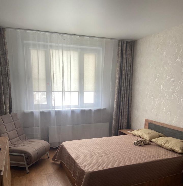 Сдаётся уютная однокомнатная квартира с евроремонтом в доме 1998 года постройки. Общая площадь составляет 39,4 кв. м, жилая площадь — 20 кв. м, а кухня — 10 кв. м. Квартира расположена на 22 этаже 22-этажного панельного дома. Высота потолков — 2,64 метра. Окна выходят на улицу, что обеспечивает хорошую освещённость.