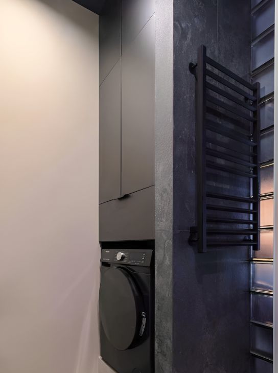 -Стеклянные блоки между ванной и гостиной — эффектная интерьерная фишка