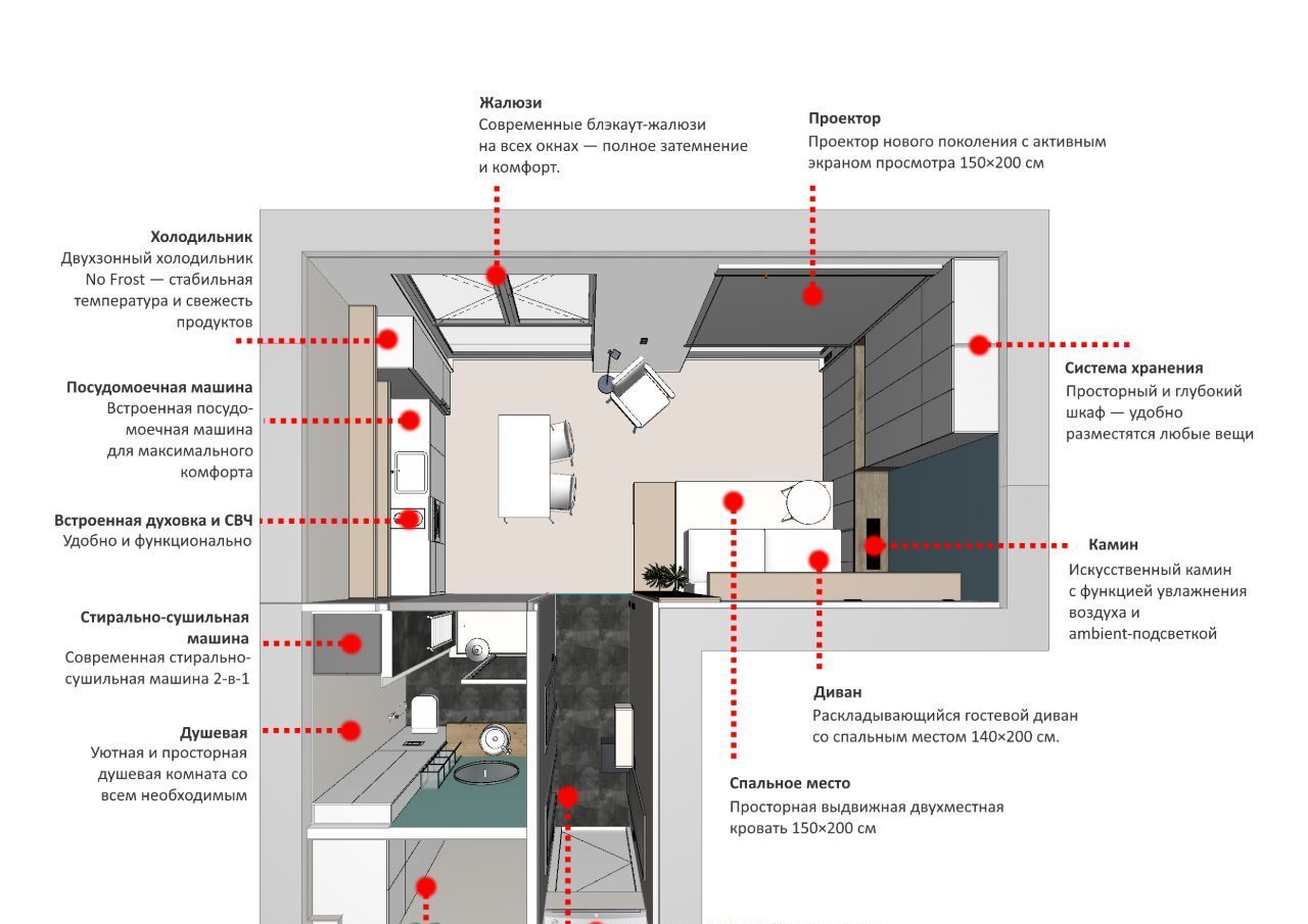 Дизайнерское пространство с продуманным зонированием и максимальным комфортом: