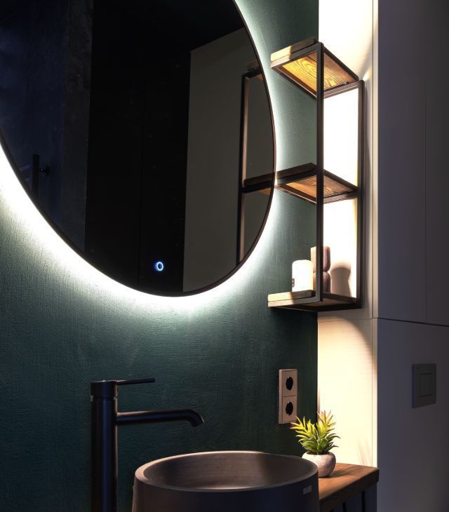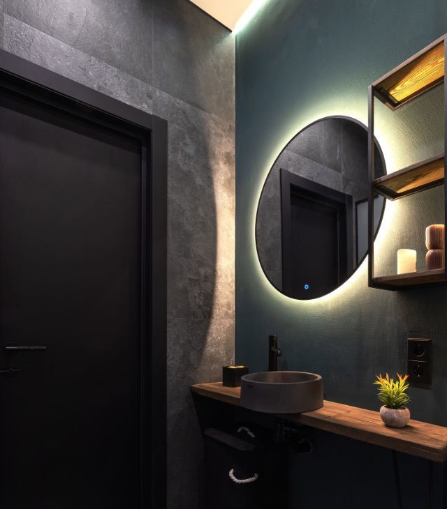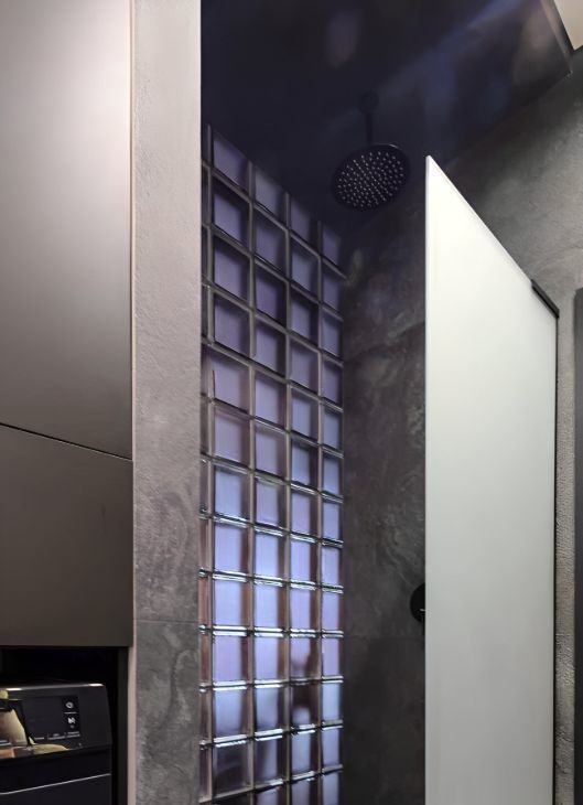 -Стеклянные блоки между ванной и гостиной — эффектная интерьерная фишка