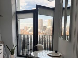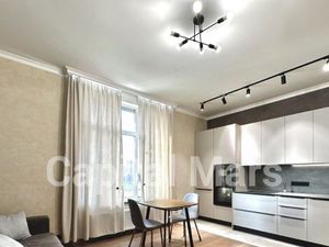 Общая площадь квартиры 33.8 кв.м, просторная гостиная-кухня с обеденной зоной и зоной отдыха, спальня с очень комфортной кроватью, совмещенный санузел с ванной. Выполнен качественный евроремонт по дизайн проекту из европейских материалов, установлен аудиодомофон. Имеется вся техника: стиральная машина, посудомоечная машина Gorenje, СВЧ , электр.духовка и электр. варочная панель Gorenje, 2 телевизора, встроенный холодильник Indesit, вытяжка, сплит-система Haier, качественная сантехника и пр. В спальне большой шкаф с разными секциями, в прихожей также вместительный шкаф. Два окна выходят в тихий внутренний двор.
