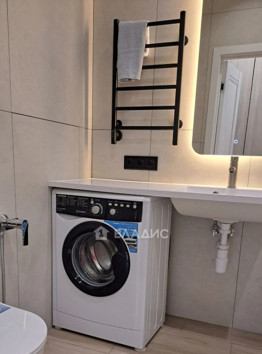 Общая площадь квартиры составляет 33,8 кв. м, из которых 20 кв. м — жилая площадь, а 9,2 кв. м — кухня. Совмещённый санузел обеспечивает удобство и функциональность. Квартира, светлая и хорошо освещенная с теплыми полами в ванной комнате и на кухне, ранее не сдавалась.