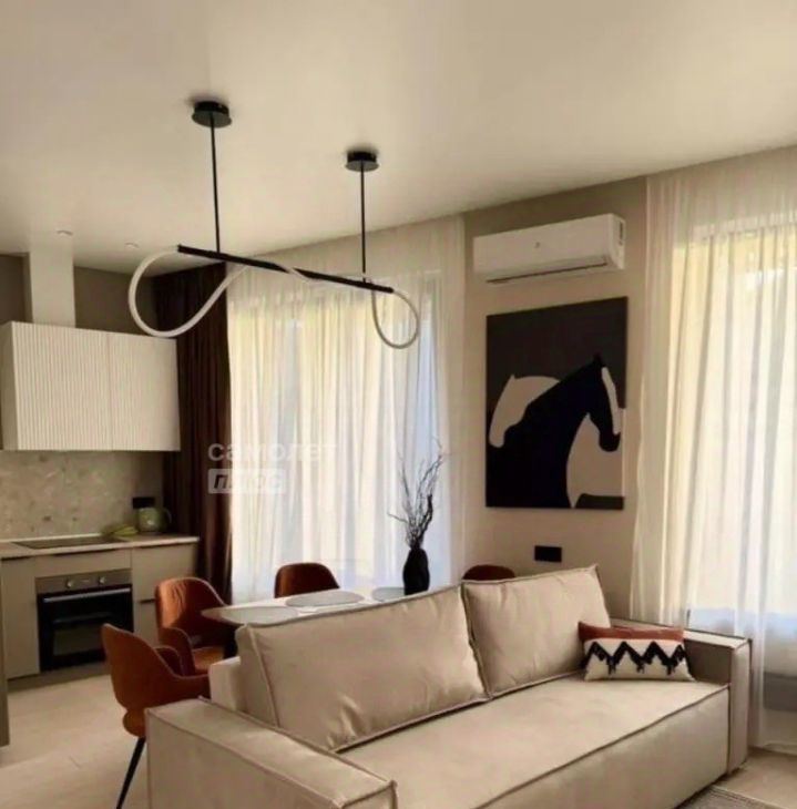 Что внутри: Всё новое, дизайнерский ремонт. Есть полноценная спальная зона с отличной двуспальной кроватью и ортопедическим матрасом. Просторная кухня-гостиная со всей техникой: от встроенного холодильника, духовки и микроволновки до чайника. Есть ТВ, стиральная машина и удобная зона хранения.