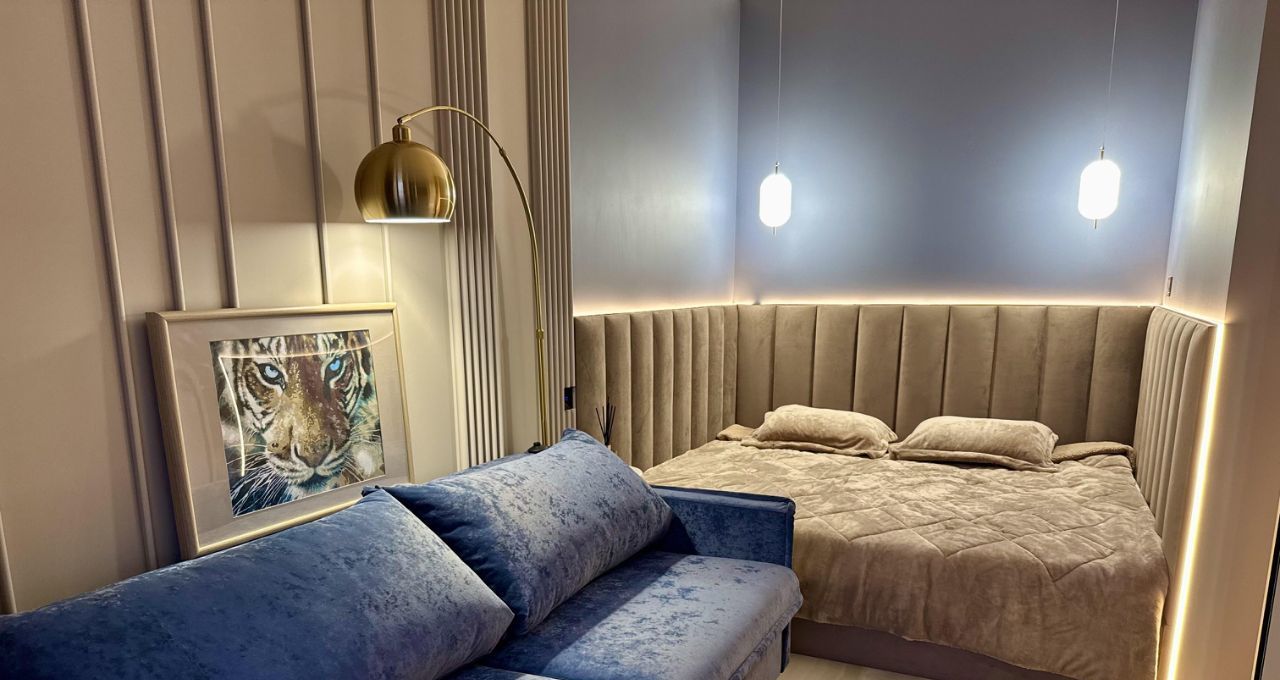 - 2 спальных места: большая мягкая кровать 200х200 с внутренними ящиками для хранения и удобный диван, раскладывается.