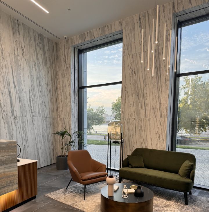 - закрытая охраняемая территория с видеонаблюдением, консьержем, лаунж- зоной, подземным паркингом.