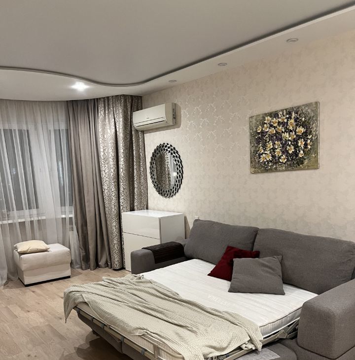 Квартира с евроремонтом и уютной обстановкой. В комнате есть вся необходимая мебель для комфортного проживания. Кухня площадью 10 кв. м также оборудована всем необходимым, включая холодильник. Среди техники — кондиционер, телевизор и стиральная машина. Санузел совмещенный, установлена ванна. Высокие потолки 2.78 метра добавляют пространству воздуха и света. Есть балкон, окна выходят на улицу и во двор, поэтому можно наслаждаться как городскими видами, так и тишиной.