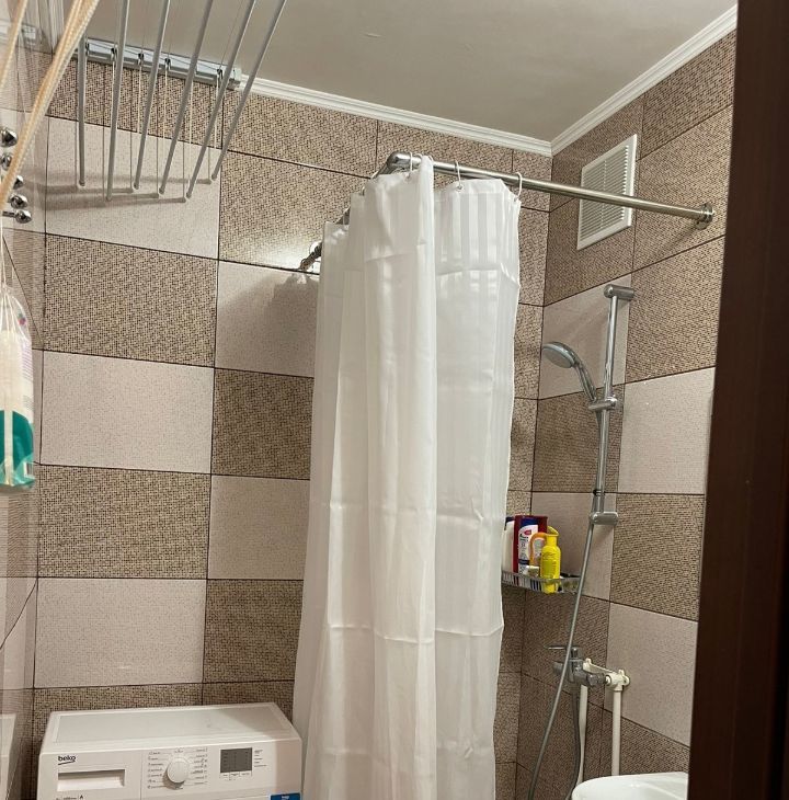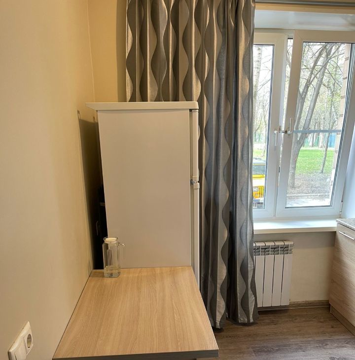 Есть вся необходимая мебель и техника: холодильник, кухонный гарнитур, чайник, микроволновая печь, стол и стулья. В комнате большой двуспальный диван, шкаф, телевизор, есть свободное пространство для рабочего места и дополнительного спального места.