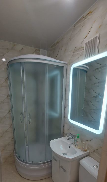 Ванная комната оснащена новой душевой кабиной.