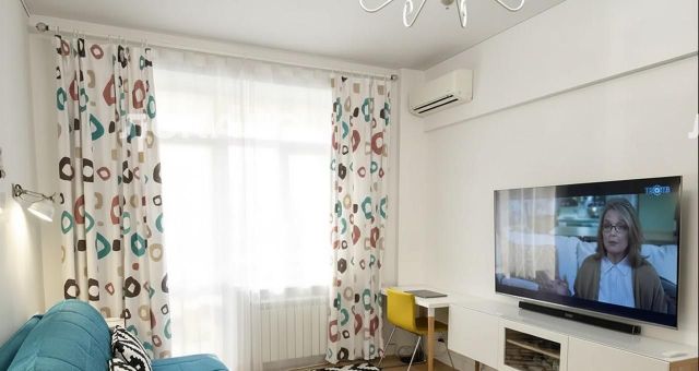 Есть вся необходимая техника: холодильник, стиральная машина, плита, встроенная микроволновка, духовка, маленький телевизор на кухне, кондиционер, телевизор в комнате 65 дюймов,