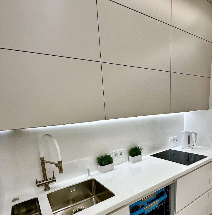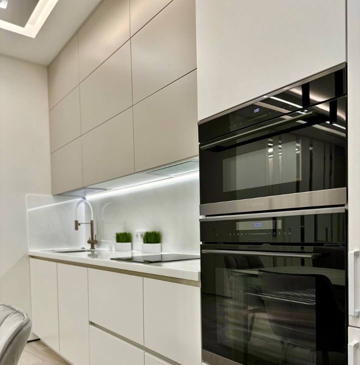 Кухня полностью оборудована техникой Krting, включая посудомоечную машину.