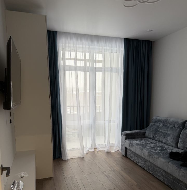 В квартире свежий евроремонт. Вся необходимая мебель на кухне и в комнате уже есть, поэтому можно сразу заехать и жить с комфортом. Ванная комната оборудована современной душевой кабиной, что делает утренние сборы быстрыми и приятными. Из техники есть кондиционер, холодильник, телевизор и стиральная машина — все для вашего удобства.
