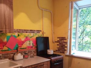 Тихий, зеленый район. Чистая квартира. Встроенная кухня: двухкамерный холодильник, СВЧ, стиральная машина, фильтр для воды. В комнате: двуспальная кровать раскладной диван, стенка-горка, угловой шкаф, стол. Совмещенный санузел (пластиковые панели), хорошая сантехника, смесители и пр. Окна стеклопакеты, во двор. Балкона Нет. Полы линолеум. Металлическая дверь. Тамбур на две квартиры. Развитая инфраструктура. Хорошее транспортное сообщение.