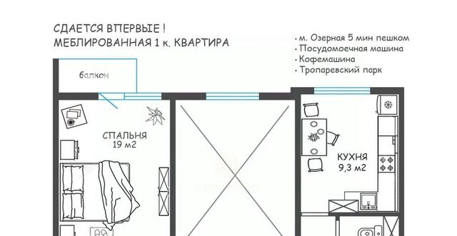м. ОЗЁРНАЯ 5 мин пешком