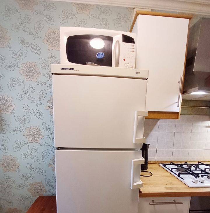 Бытовая техника для комфортного проживания - холодильник, стиральная машина, телевизор, газовая варочная панель, печка СВЧ, духовка.