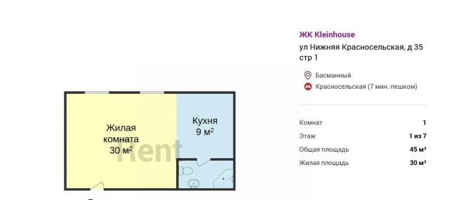 1-к кв. Москва Нижняя Красносельская ул., 35С1 (45.0 м²)
