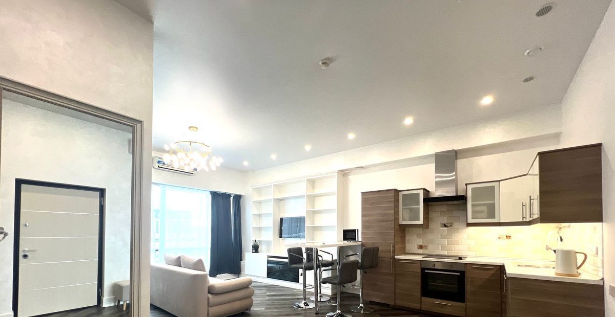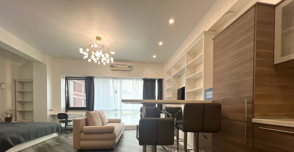 В квартире сделан дизайнерский ремонт, который подчеркнёт ваш индивидуальный стиль. Здесь есть всё необходимое для комфортной жизни: кондиционер, холодильник, посудомоечная машина, стиральная машина и телевизор. На кухне и в комнате установлена современная мебель, камин, а в ванной комнате вас ждёт уютная ванна. Окна выходят во двор, поэтому всегда будет тихо и спокойно.