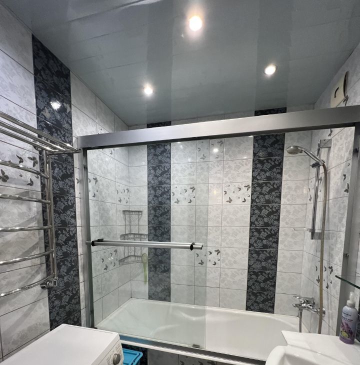 Ванная комната: стиральная машина, полотенцесушитель.