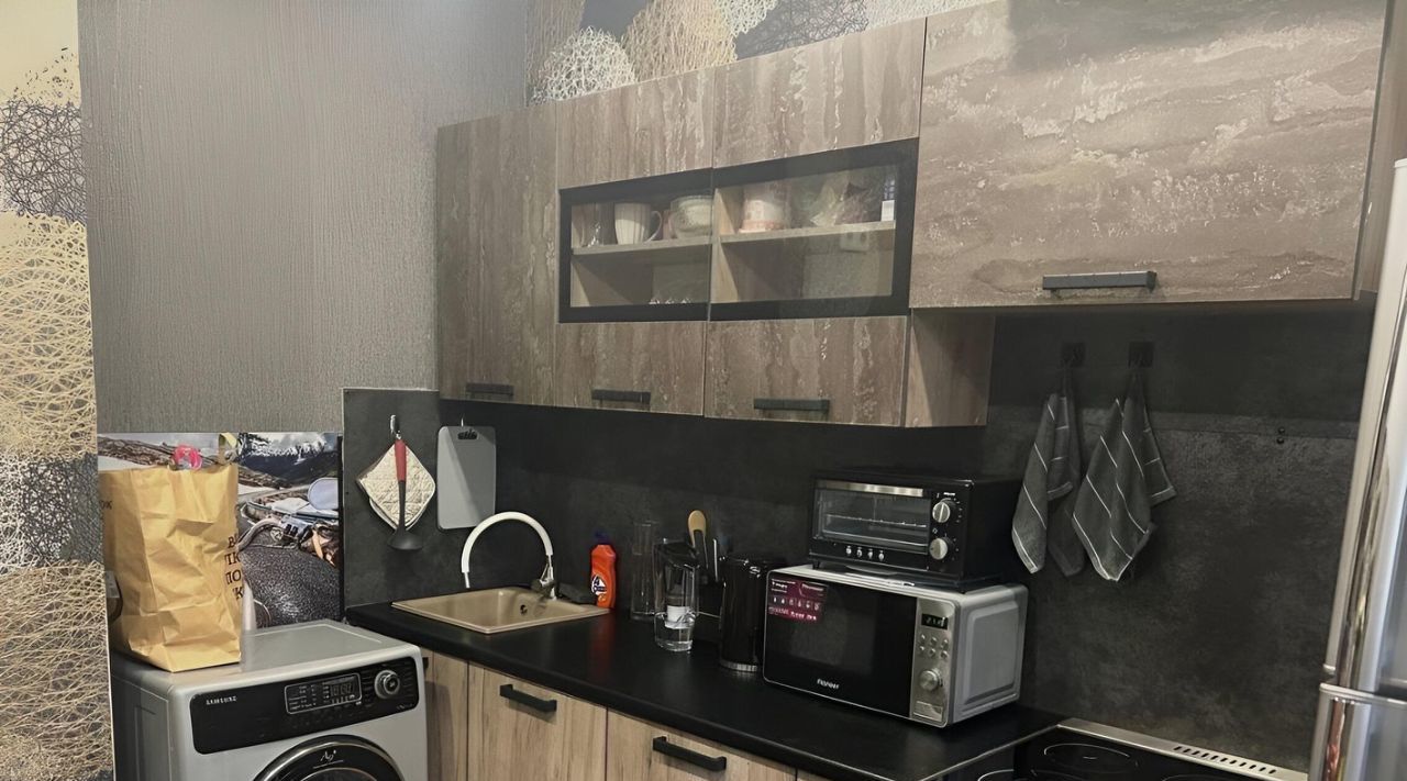 В квартире сделан евроремонт, что создаёт современную и комфортную атмосферу. Просторная жилая площадь — 25 квадратных метров, кухня — 9 квадратных метров. Ванная комната оборудована душевой кабиной. В квартире есть всё необходимое для комфортного проживания: холодильник, телевизор, стиральная машина, а также мебель на кухне и в комнате. Подключен интернет для вашего удобства.