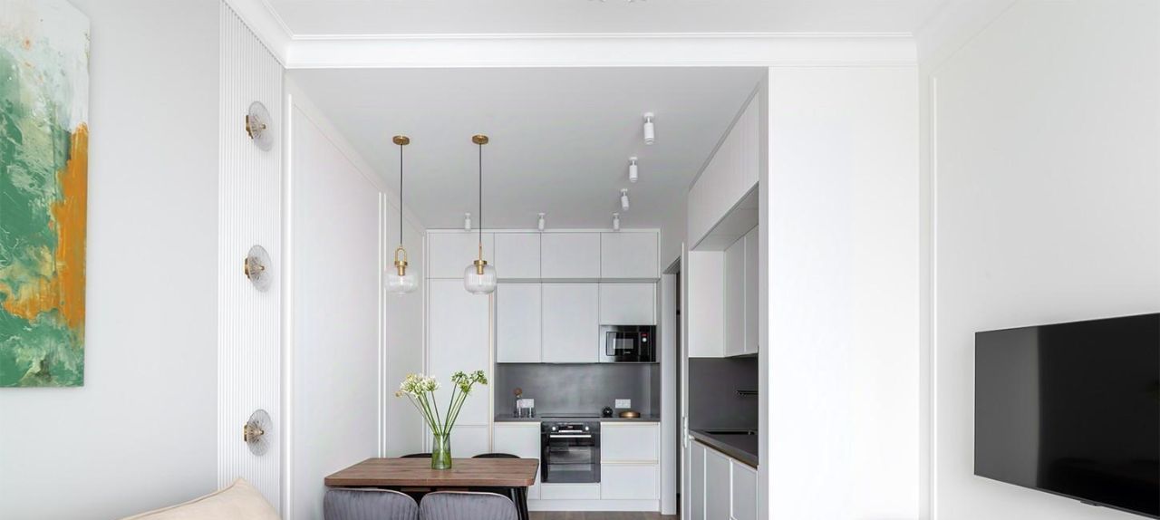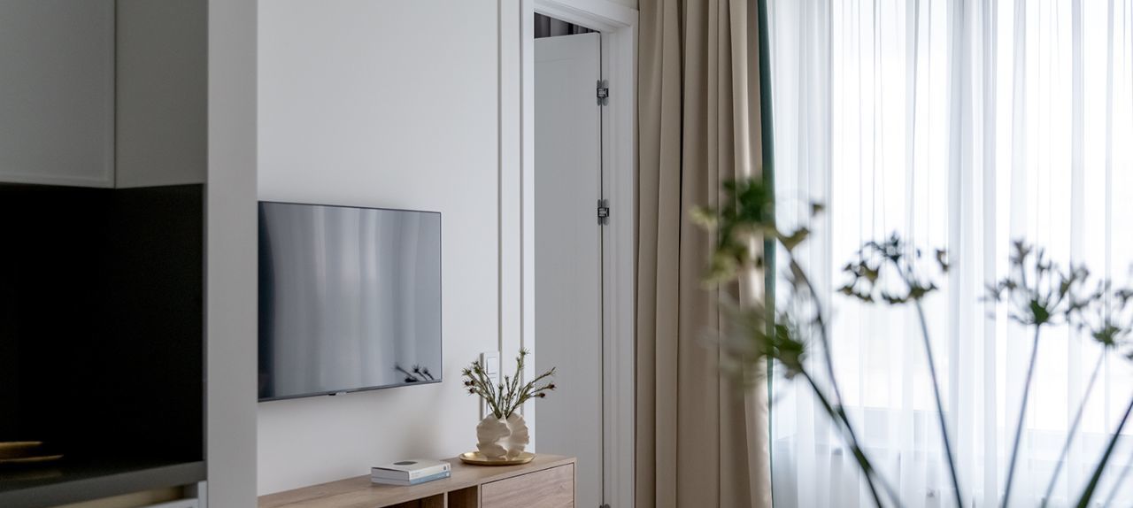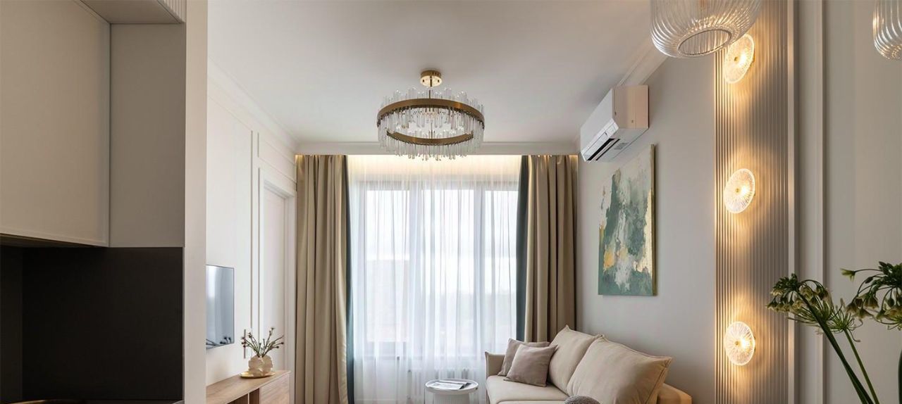 Квартира с дизайнерским ремонтом, который создаёт атмосферу уюта и современности. Удачная планировка: изолированная спальня, кухня-гостиная 18кв.м, просторный санузел и коридор. В комнате и на кухне есть вся необходимая мебель и техника: холодильник, кондиционер, телевизор, посудомоечная и стиральная машины, установлен водонагреватель и аквастоп.