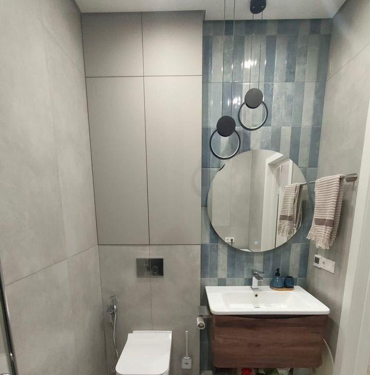 Ванная комната оборудована душевой кабиной, совмещенный санузел.