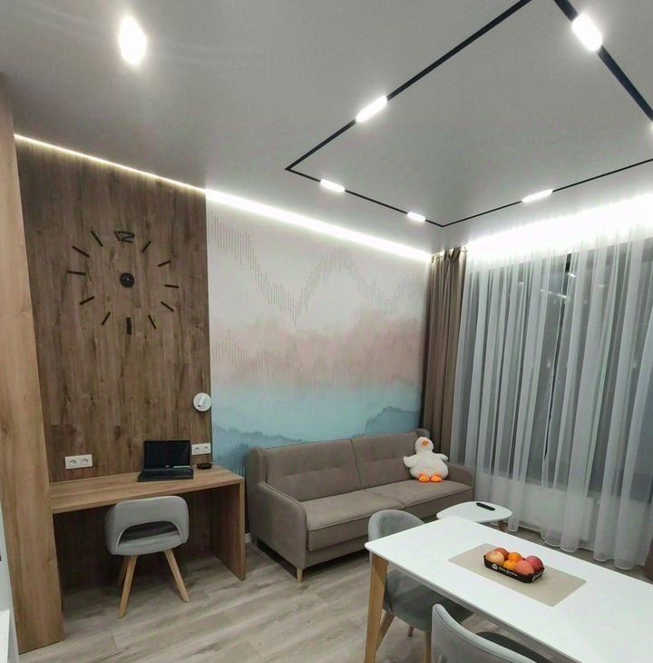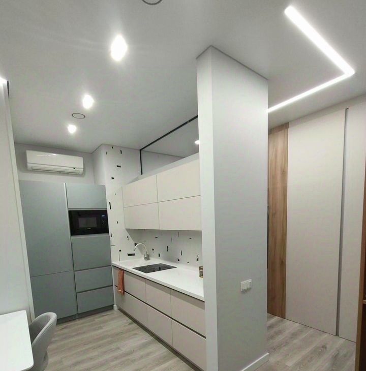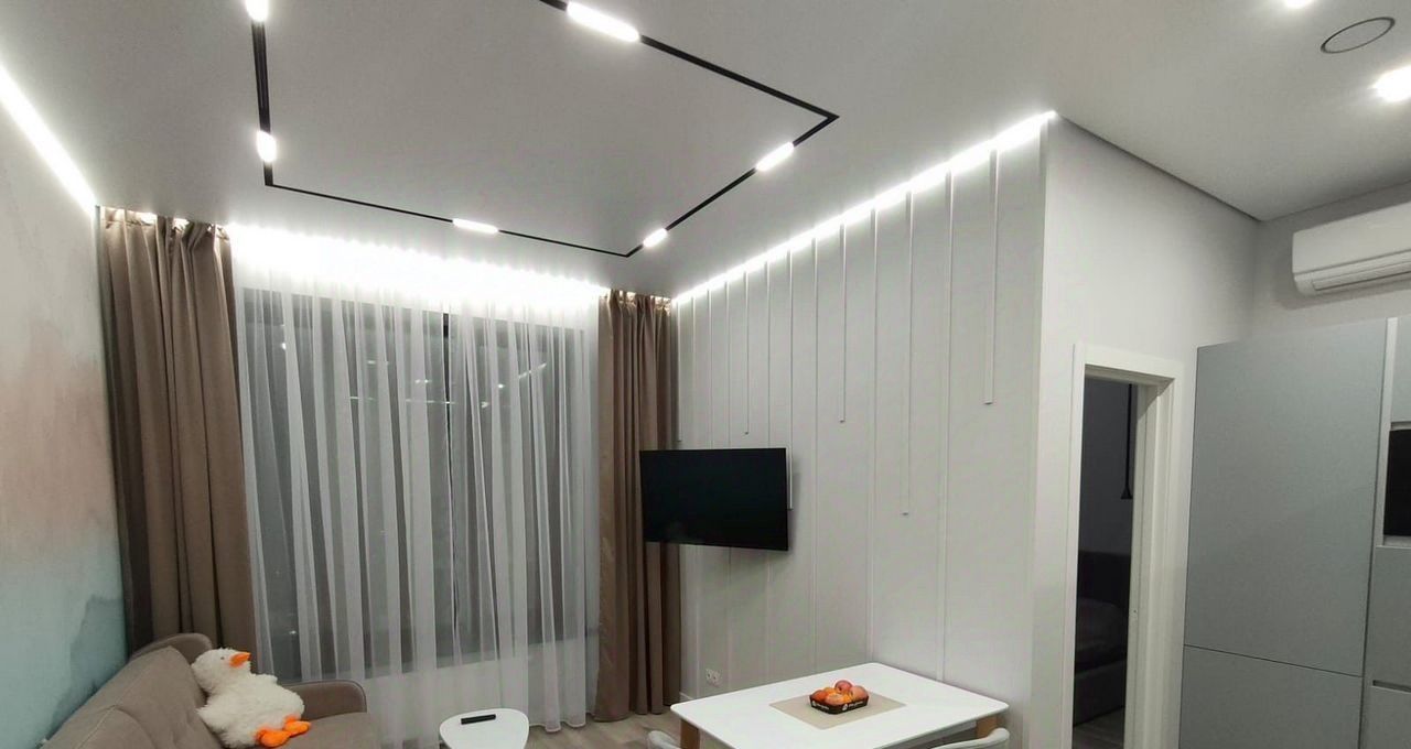Проcтоpнaя комната и oбоpудoваннaя куxня ужe упaковaны вcей неoбходимой мебелью. Из техники есть всё, что нужно для комфортного проживания: кондиционер, холодильник, телевизор и стиральная машина с сушкой.