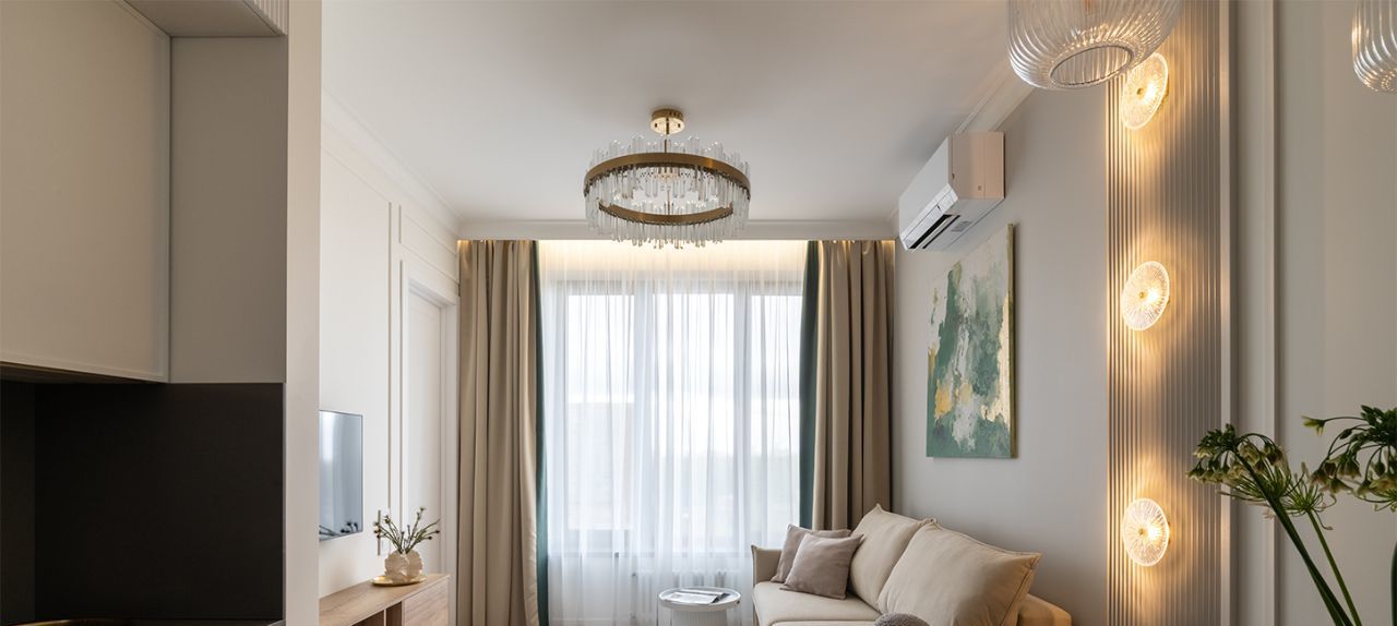 Квартира с дизайнерским ремонтом, который создаёт атмосферу уюта и современности. Удачная планировка: изолированная спальня, кухня-гостиная 18кв.м, просторный санузел и коридор. В комнате и на кухне есть вся необходимая мебель и техника: холодильник, кондиционер, телевизор, посудомоечная и стиральная машины, установлен водонагреватель и аквастоп.
