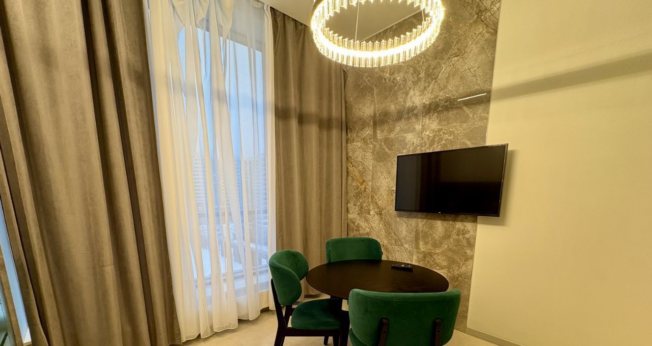 Окна выходят во двор, обеспечивая тишину и уют. Квартира полностью меблирована и оборудована всей необходимой техникой: кондиционер, холодильник, посудомоечная машина, телевизор и стиральная машина. В комнате установлена удобная мебель, обеспечивающая комфортное проживание. Ванная комната оборудована современной душевой кабиной!