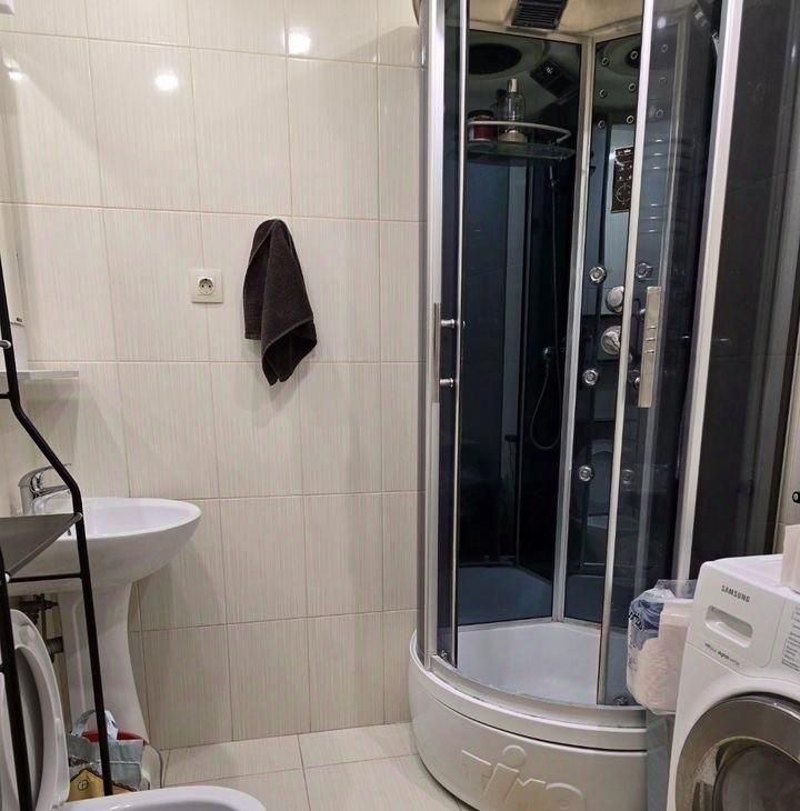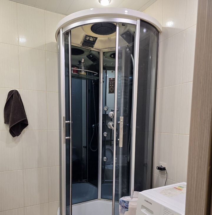 Холодильник обсуждаем при заселении. В санузеле - душевая кабинка, гигиенический душ.