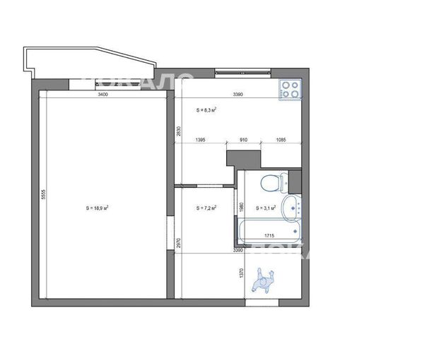 1-к кв. Москва Новочеркасский бул., 30 (38.0 м²)