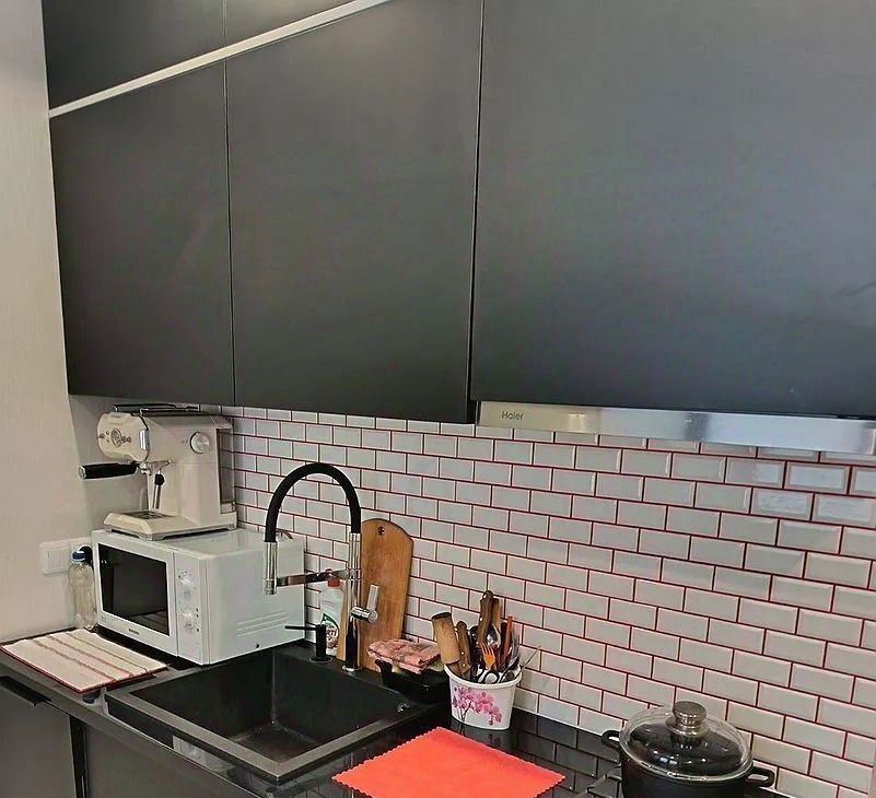 - Полный набор техники: ТВ, духовой шкаф, стиральная и сушильная машины, посудомойка, микроволновка, пылесос