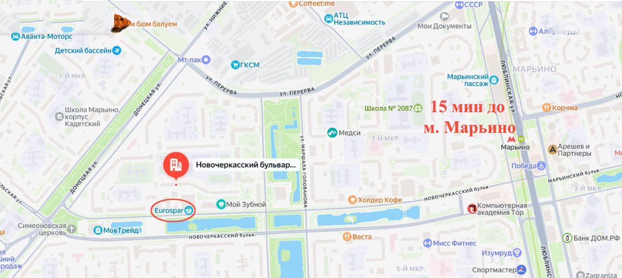 Сдам 1-комнатную квартиру в шаговой доступности от метро Марьино! Без балкона.